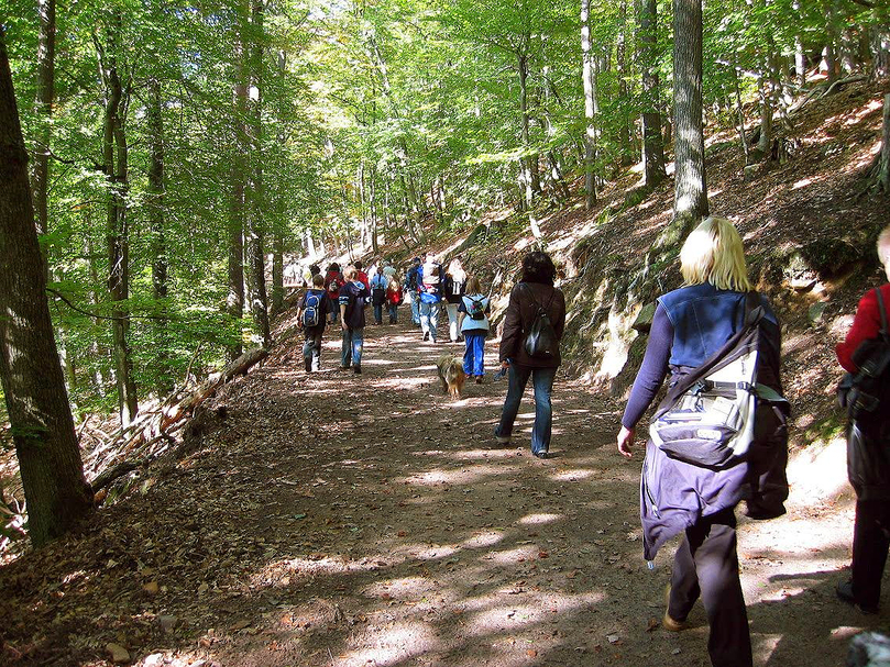 Ein traumhaft schöner Herbsttag nimmt nun seinen Lauf. 298 Füße und 8 Räder bewegene sich kolonnenmäßig durch den Pfälzerwald. Dies teilt sich in 76 Personen (die 2 Jüngsten mit 4-rädrigem Fahrgestell) und 37 Wuffis - 7 Lhasas,1 1 Lhasa-Mix und 29 Tibis - auf.