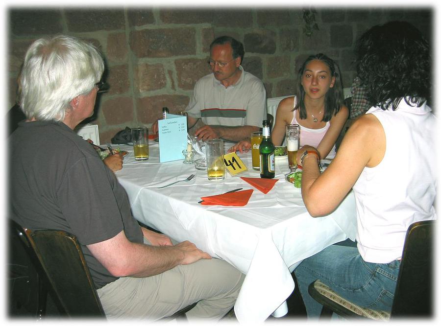 Anschließend haben wir im Restaurant "Am Dorfbrunnen" in Hainfeld die urige Winzerscheune des Restaurants "Am Dorfbrunnen" für alle 47 Zwei- und 22 Vierbeiner reserviert, um die verbrauchten Energien wieder auftanken zu können. Unsere Tibis werden bereits mit Wasser, Futter und Leckerlis erwartet. Aber auch für die Leinenträger gibt es lauter feines Essen und vor allem eisgekühlte Getränke.
